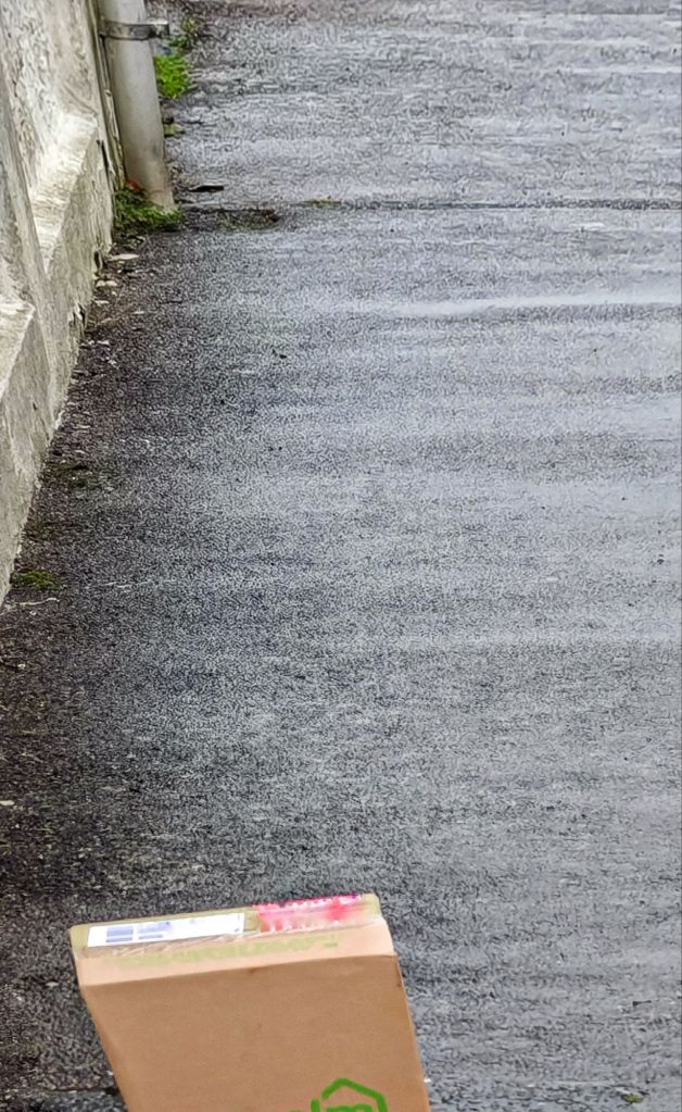 A cardboard box was in the middle of the pavement. I kicked at it. My leg fell into the coal hole whose cover had been removed. I had to go and have stitches to the cut.